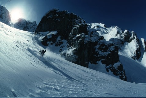 私達は、1992年よりゲレンデ外に目を向け、バックカントリースタイルのスキー及びスノーボードを確立して参りました。その間、多くの海外活動を経て、白馬連峰、立山連峰、谷川岳周辺、富士山周辺と言った、日本でも代表的な山岳エリアにおいて、その活動は進みました。特に、94年以降の唐松岳に至る八方尾根開拓、96年に始まる不帰岳三峰・二峰・一峰開拓(中でも96年における不帰岳二峰南峰[通称:オーワイド]、99年における二峰北峰[通称:ゴーストレイト]、2002年における二峰中央尾根[通称:ノーズダイブ]、03年における二峰真中[通称:極真]、04年における二峰北峰北壁ルンゼ、05年における二峰真中をダブルアックスで登頂のち北峰を滑ると言うクライム&スキーダウンの実践など、それらの滑降はバックカントリーと言う定義を越えたエクストリームな活動となりました)、97年以降の五竜岳に至る遠見尾根開拓、白馬岳・杓子岳・鑓ヶ岳と言った白馬三山における開拓など、それらの活動は多大な注目を集めることとなりました。