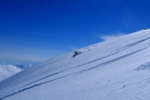 五竜小遠見山を越え至る天狗岳。ちょっと山奥?な頂からスティープなラインが幾本にも伸びる!なんと滑走標高差は約1,200m!!